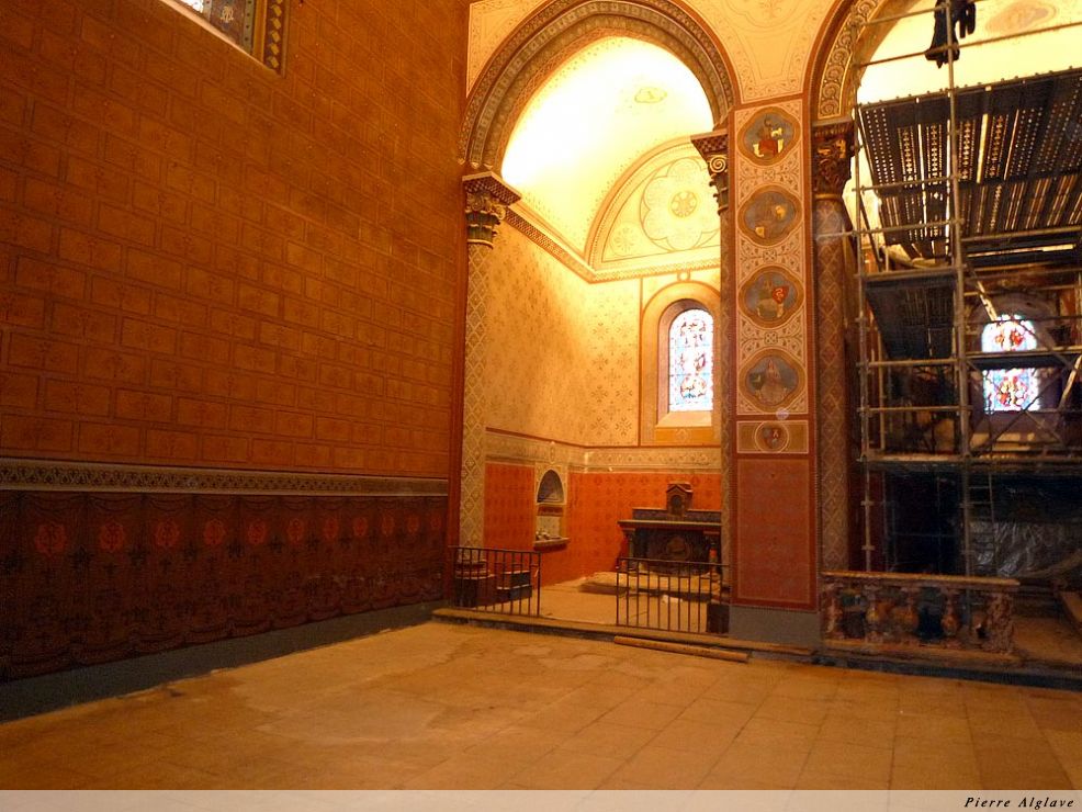 Me voilà dans la cathédrale qui est malheureusement en pleine restauration. Une partie des peintures, genre Moissac, a déjà été refaite, elles sont éclatantes. Le reste est très sombre et assez décrépi. Il y en avait sans doute un grand besoin.