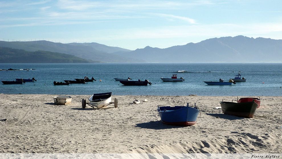 Le bus est bientôt là, il faut compter 3 h pour faire les 100km qui nous séparent de Santiago : il suit toute la côte. Ce n’est pas désagréable, en fait je n’imaginais pas toute cette autre vie parallèle à celle du Chemin : stations balnéaires animées, élevages de poissons au milieu des rias, …