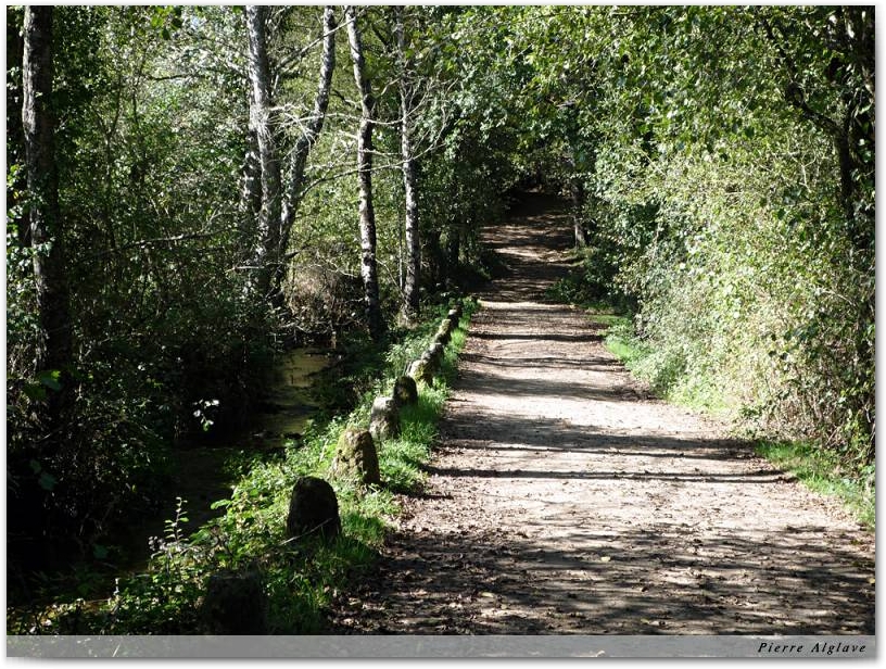 10h30, un peu après Boimorto. Jusqu’à présent il faisait plutôt froid, surtout à l’ombre, mais à présent il fait doux. Pendant longtemps j’ai été suivi par le groupe des jeunes Espagnols auquel c’est jointe Cleria. J’ai essayé de les semer, non pas qu’ils soient antipathiques, au contraire, mais ils parlaient joyeusement entre eux, parfois même ils chantaient, sans aucune interruption et j’aurais bien aimé me laisser aller au calme matinal. Puis, petit à petit, je me suis habitué à leur présence, à moins que je m’en sois fait une raison car ils sont dans la force de l’âge et je n’arrivais pas, malgré mes efforts, à creuser l’écart. Ils viennent de s’arrêter dans un bar : la route est à moi. Je devrais être à Arzua vers 13h. Qu’est ce que je vais bien pouvoir faire là-bas tout l’après-midi ? Autant continuer, ainsi je serai à Compostelle le 15, la veille de mon anniversaire, au diable les symboles, il faut suivre sa nature. A Boimorto j’aurais pu emprunter un raccourci qui permet d’éviter Arzua, mais j’ai envie de repasser dans mes traces de l’année dernière et voir à quoi ressemble ce tronçon quand il n’est pas sous une pluie torrentielle et glaciale.