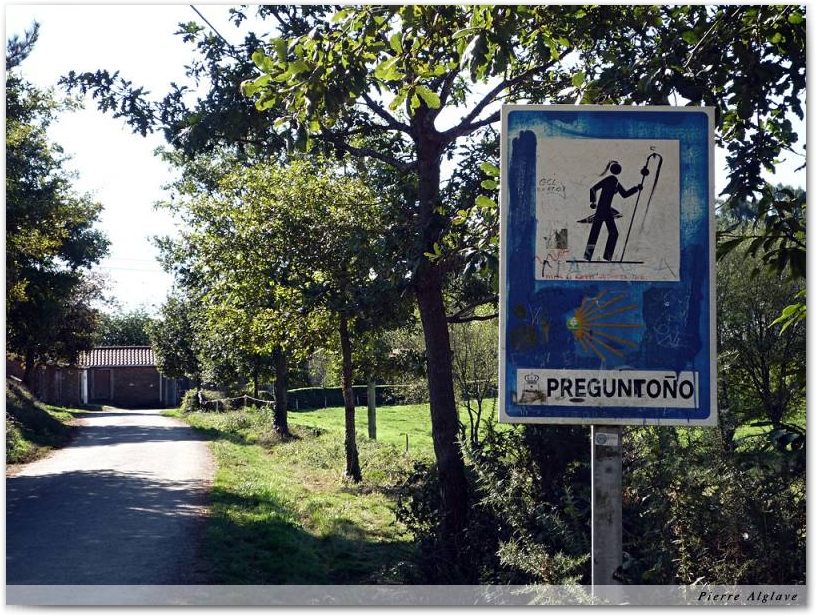 Il fait très beau et il n’y a pratiquement pas un chat sur le Chemin, pourtant j’ai fait ma jonction avec le surpeuplé Camino Frances. Le gros de la troupe est sans doute parti ce matin d’Arzua, et les autres marcheurs, qui, comme moi, viennent de plus loin s’égrainent sur le trajet. J’espère qu’il n’y en aura quand même pas trop, 88 places c’est à la fois beaucoup et peu sur cette partie du Chemin. On verra bien, jusqu’à présent il n’y a jamais eu de problème, je reste confiant, ou inconscient.
