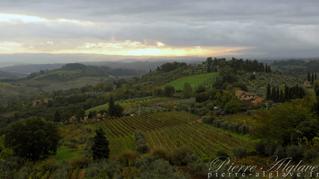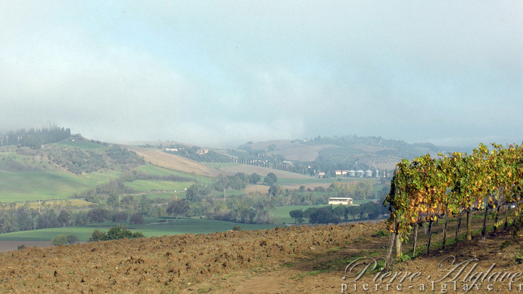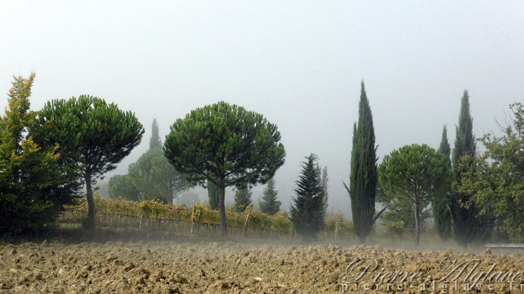 Parti à pied d’Auffargis en automne 2013 je l’ai rejointe au niveau de Bar-sur-Aube puis suivie jusqu’à Rome. On m’avait dit « Tu verras, la Toscane, c’est merveilleux !». C’est vrai, mais mes interlocuteurs imaginaient un soleil radieux, un ciel lumineux, des couleurs éclatantes. J’y ai trouvé la pluie, la brume et même le froid.