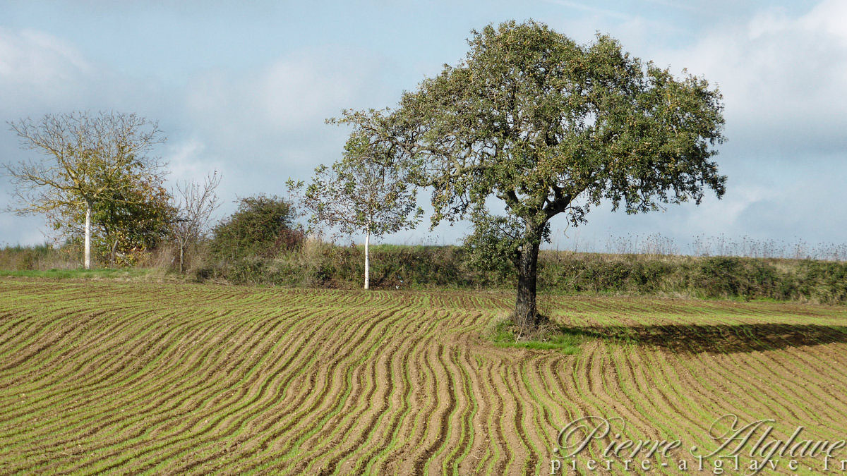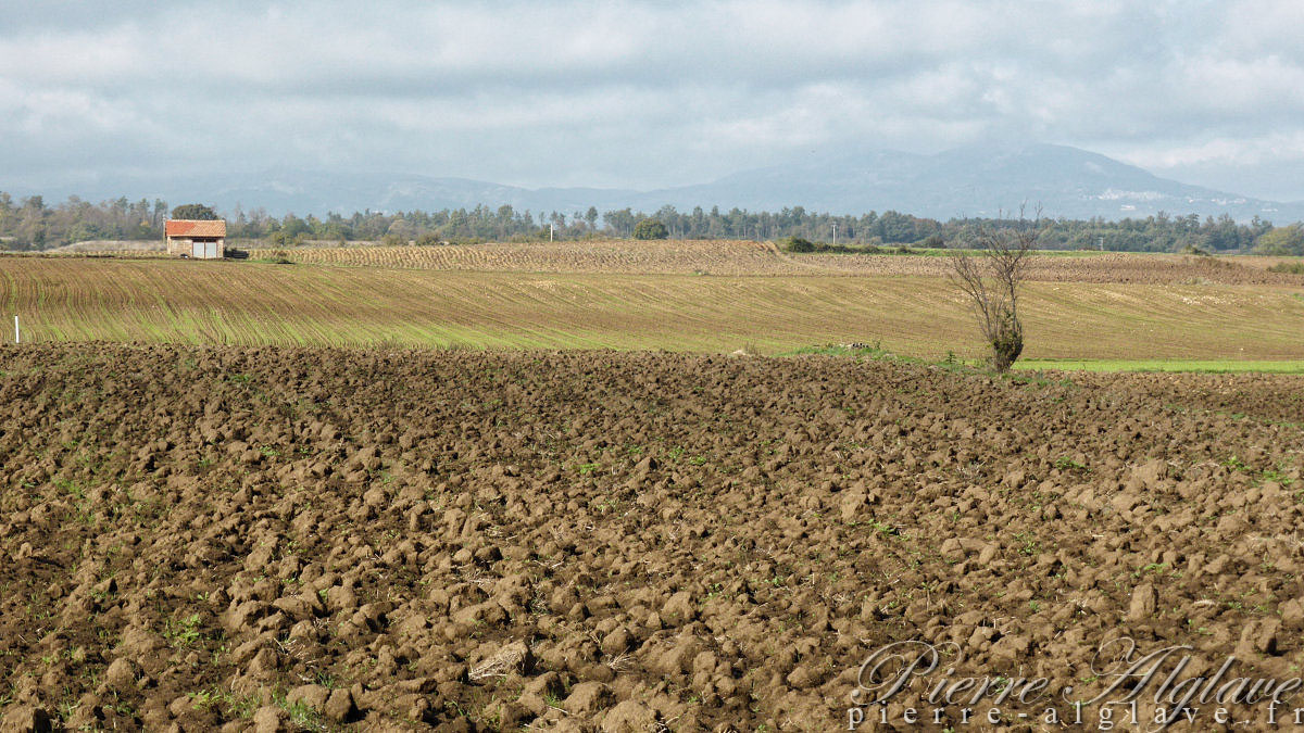 Bientôt 11 heures, je fais une petite pause sur le bord du chemin, assis sur la petite feuille de plastique à bulles qui ne quitte jamais mon sac pour me protéger des sols humides. Je viens de réserver ma place pour cette nuit chez les sœurs du Santissimo Sacramento à Bolsena. Je leur ai annoncé une arrivée vers seize heures. Il reste environ douze kilomètres pour y parvenir, cela devrait être large, même si étant dans cet état d’esprit que j’ai déjà connu à plusieurs reprises, à la fois pressé dans finir et à la fois nostalgique que ça se termine, je prends mon temps. La route est agréable, sans gros dénivelés, les paysages ne sont pas extraordinaires, mais paisibles même si ça pétarade encore de temps à autre ; le ciel vire petit à petit au bleu.