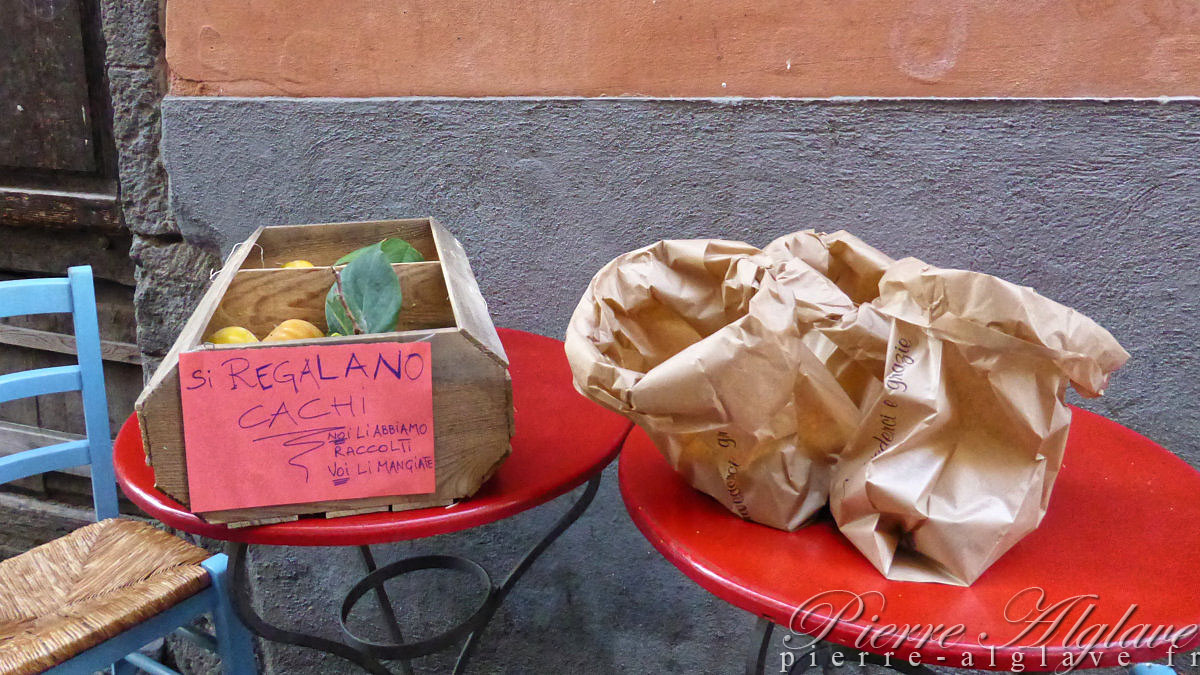 Tout naturellement j’opte pour l’Osteria La Francigena. Alors que je consulte consciencieusement le menu, le cuisinier s’approche et me lance une longue tirade. Devant mon air interloqué il s’écrit avec un grand sourire « Ah ! Pellegrino ! ». Les gens sont accueillants. Mon choix s’est porté sur des spaghettis à la carbonara, puis une cuisse de canard avec ses pommes de terre, une petite piqûre de rappel du chemin de Compostelle sur la voie du Puy-en-Velay lors de la traversée du Sud-Ouest.