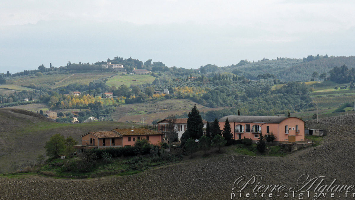 10 h 45, le ciel est toujours très menaçant et je viens de lâcher prise : je ne ferai pas les 40 kilomètres jusqu’à San Giminiano, les côtes sont quand même un obstacle, je risque d’arriver après 20 heures et trouver porte close. Ce soir je dormirai donc probablement à Chianni ou à Gambassi Terme, au-delà il n’y a pas de quoi se loger avant San Giminiano, donc je n’ai pas le choix, ce sera une étape d’au mieux 20 à 25 kilomètres. Du coup je retombe dans le road-book d’Anne, la liste de ses étapes sur la Via Francigena qu’elle m’a communiquée avant mon départ. Difficile d’être original, il faut me plier à la réalité.
