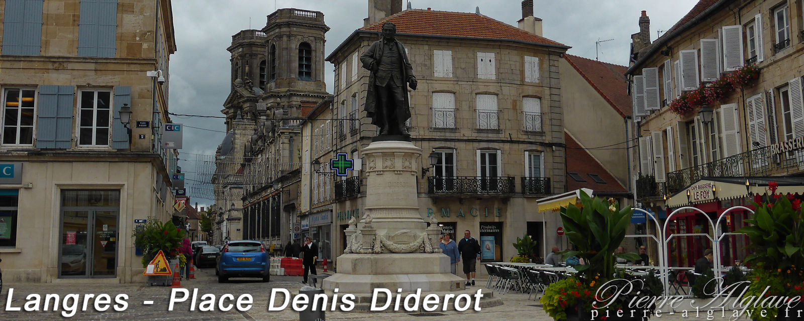 Quinze heures, j’aperçois Langres sur son éperon. Seize heures, j’entre dans sa citadelle. Petit tour de ville, visite de la cathédrale Saint-Mammés, passage au pied de la statue de Denis Diderot. Il commence à pluviner. À l’Office de Tourisme, accueil très chaleureux, mais je n’y apprends rien que je ne connaisse déjà.