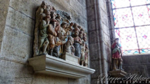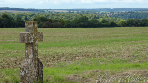Au bord de la route de grands crucifix en pierre avec souvent sur le socle le nom du généreux donateur ou en souvenir de quelqu’un. Ici : « Marie Bouchet – 1807 ».