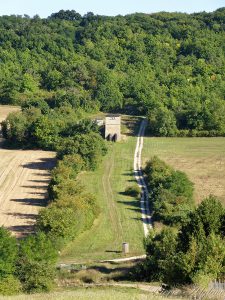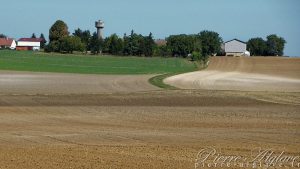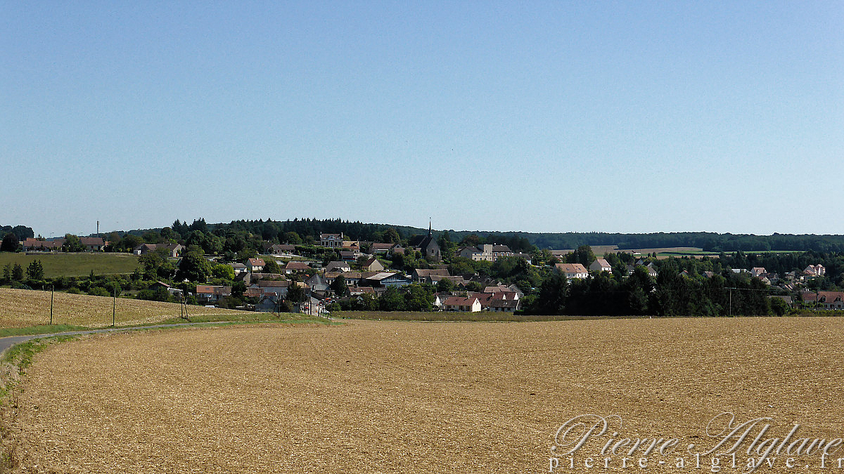 Après Gerjus le chemin suit à nouveau l’aqueduc de la Vanne qui ici circule sous terre. Il fait très chaud, sur du goudron on sent la chaleur qui monte à l’assaut des mollets. Quelques parcelles vertes, le rouge des toitures et le blanc des chaumes ou de la craie qui affleure dans l’ocre des labours composent des tableaux paisibles.