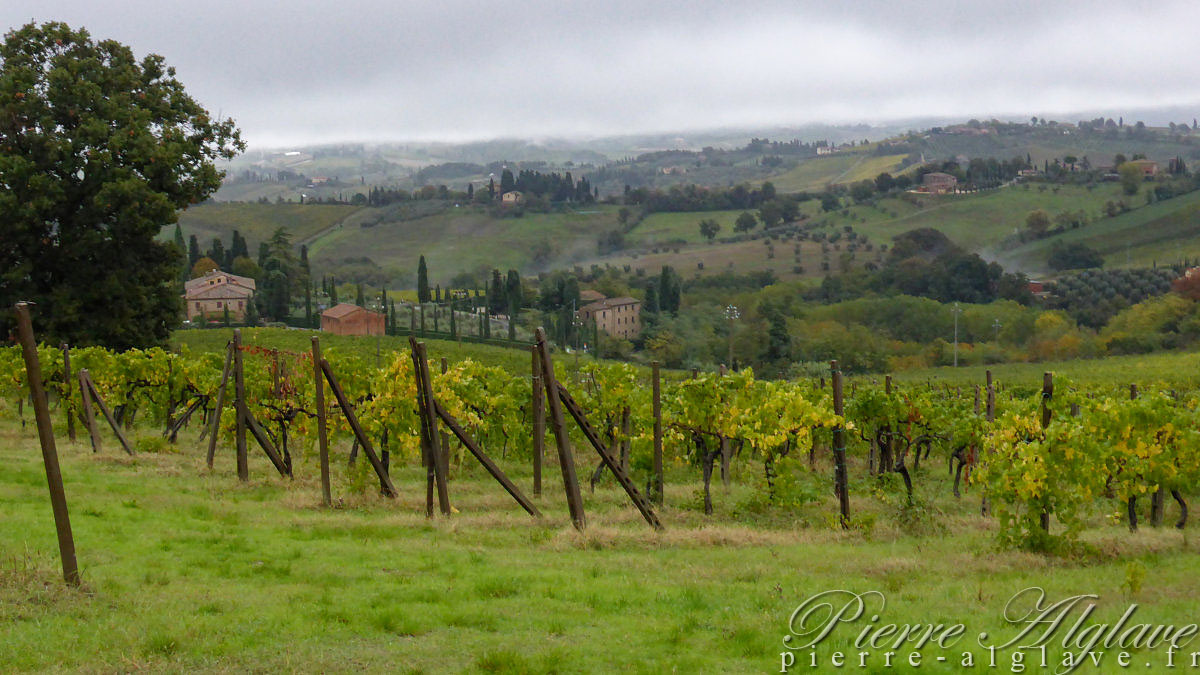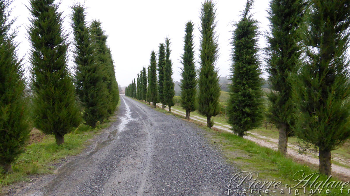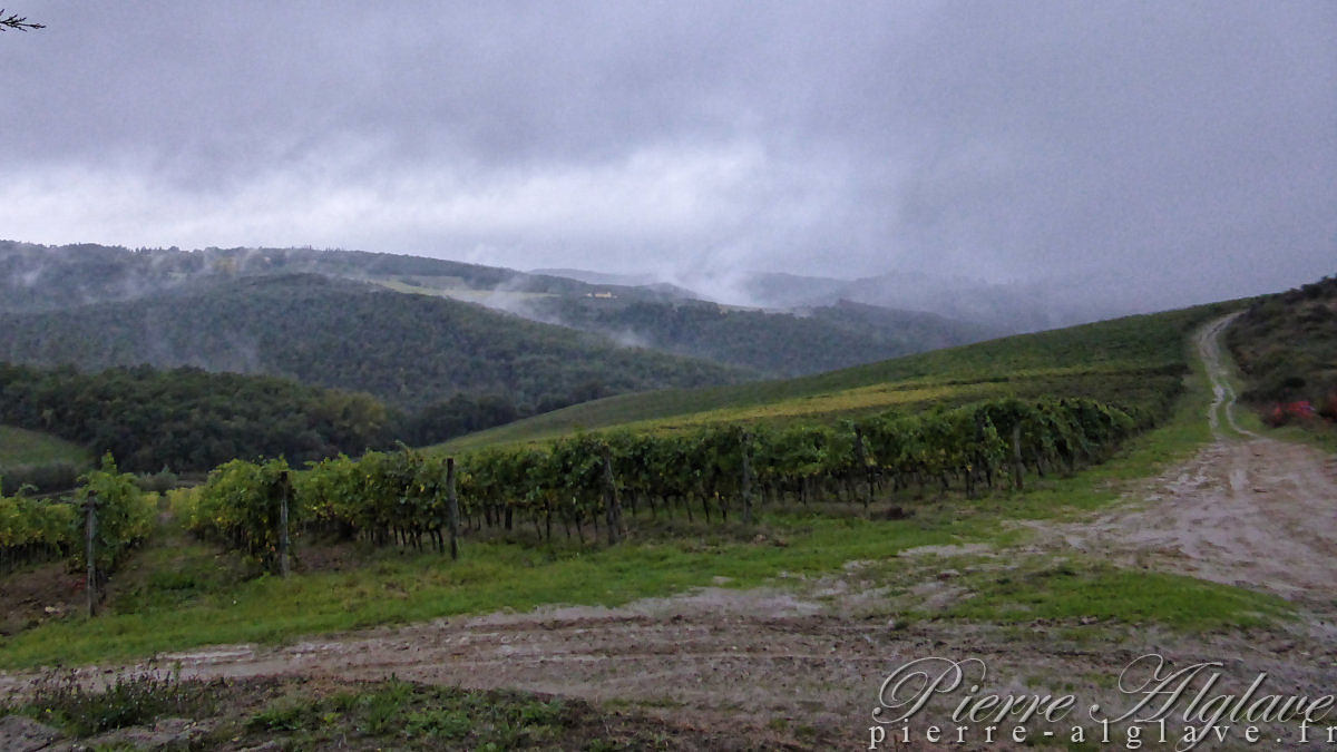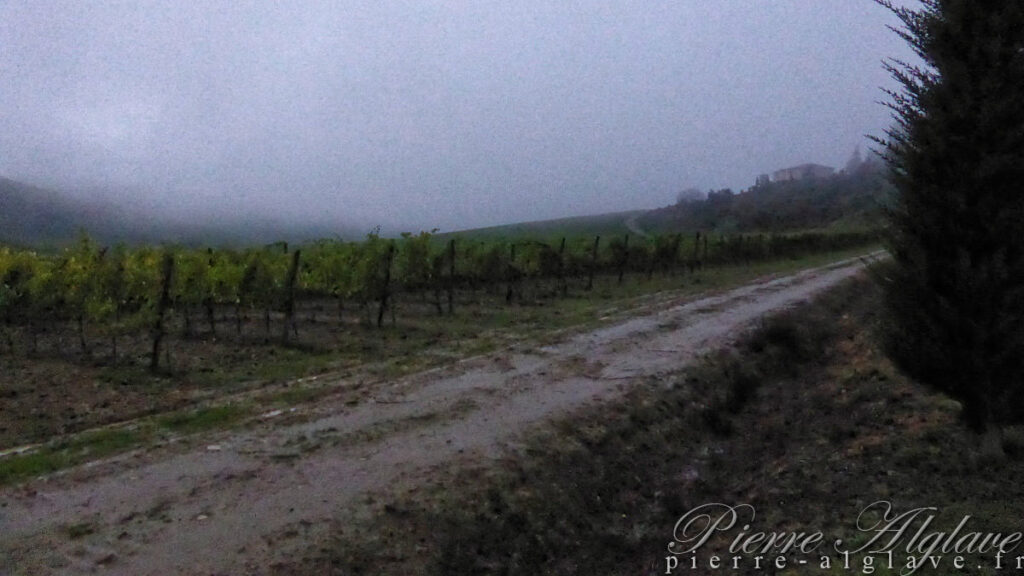 Ici en principe c’est une région avec des paysages magnifiques et c’est vrai que même dans cette semi-obscurité, à la lueur du jour qui se lève, cela reste très beau. J’aurais connu cet aspect de la Toscane, sous la pluie, mais évidemment côté photo ce n’est pas optimal.