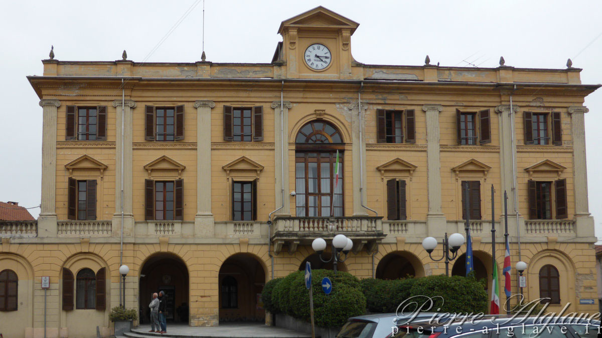 16 h 15, j’entre enfin dans Santhià. Comme convenu je suis allé chercher la clé du refuge des Amis de la Via Francigena au café sur la piazza Roma. Le patron, très sympathique, m’a accompagné jusqu’au refuge à deux pas pour me faire visiter les lieux et me donner les consignes. C’est « offerta », minimum 10 euros et il y a des bons pour un repas pèlerin à 10 euros. On tamponne soi-même sa crédentiale. Il n’y a pas de wifi, mais on peut aller à la bibliothèque où le patron propose de m’emmener. Il faudra rendre les clés demain au café qui ouvre à 7 heures sinon, avant, on peut les déposer dans la boîte aux lettres.