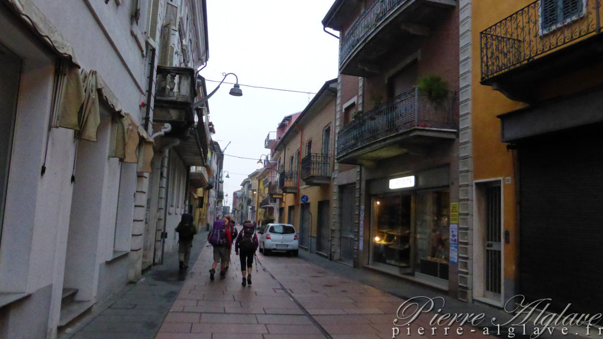 15 heures j’entre dans Vercelli. Nos studios, « Al Viaggiator Leggero » (Chez le voyageur léger), se trouvent rue Verdi que mon GPS me situe à plus d’une heure de marche. Cela semble beaucoup. J’appelle le propriétaire pour avoir des précisions, mais ça ne répond pas. D’après ce que je sais ce serait près de la gare vers laquelle je décide donc de me diriger.